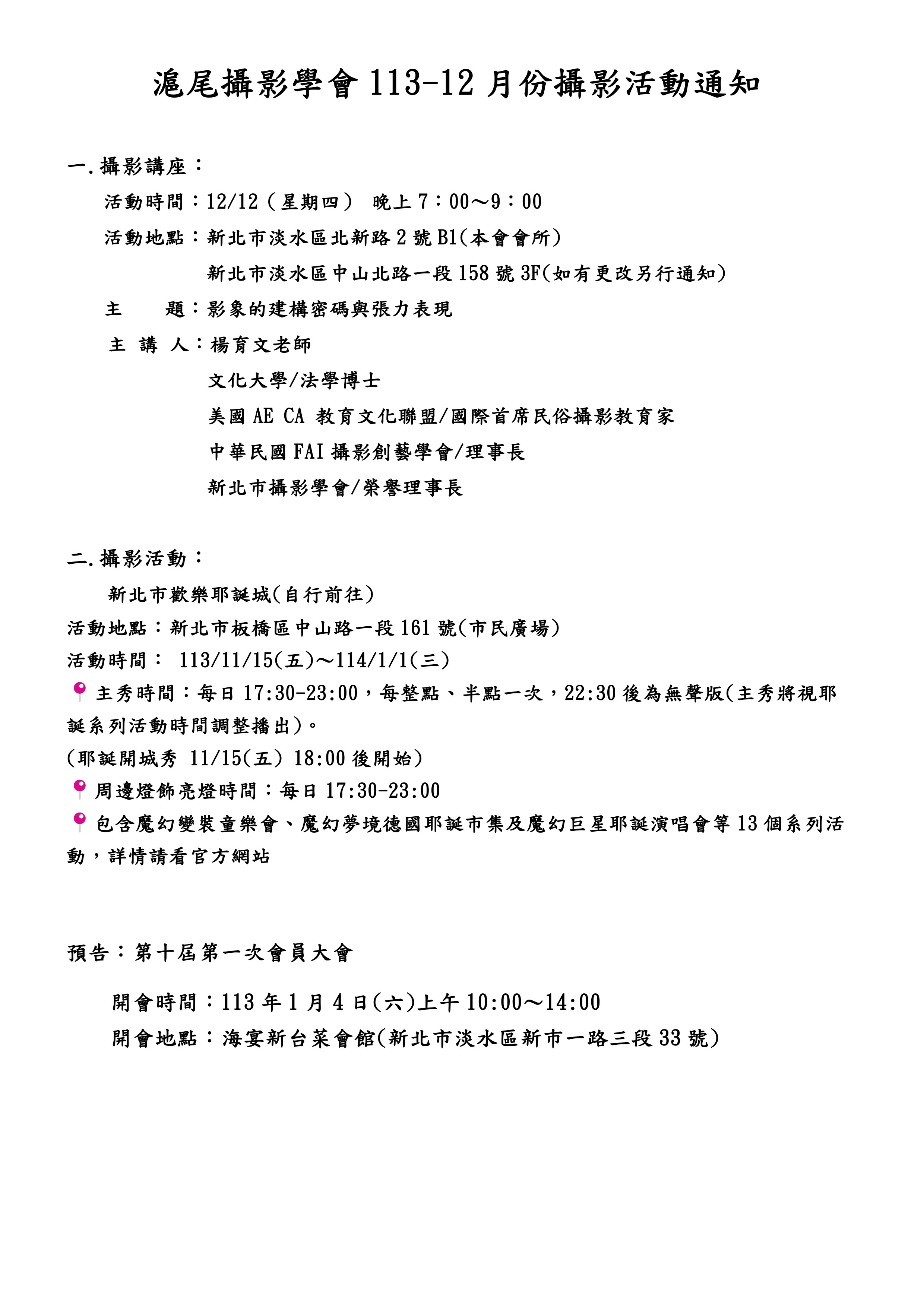 2024十二月份活動通知