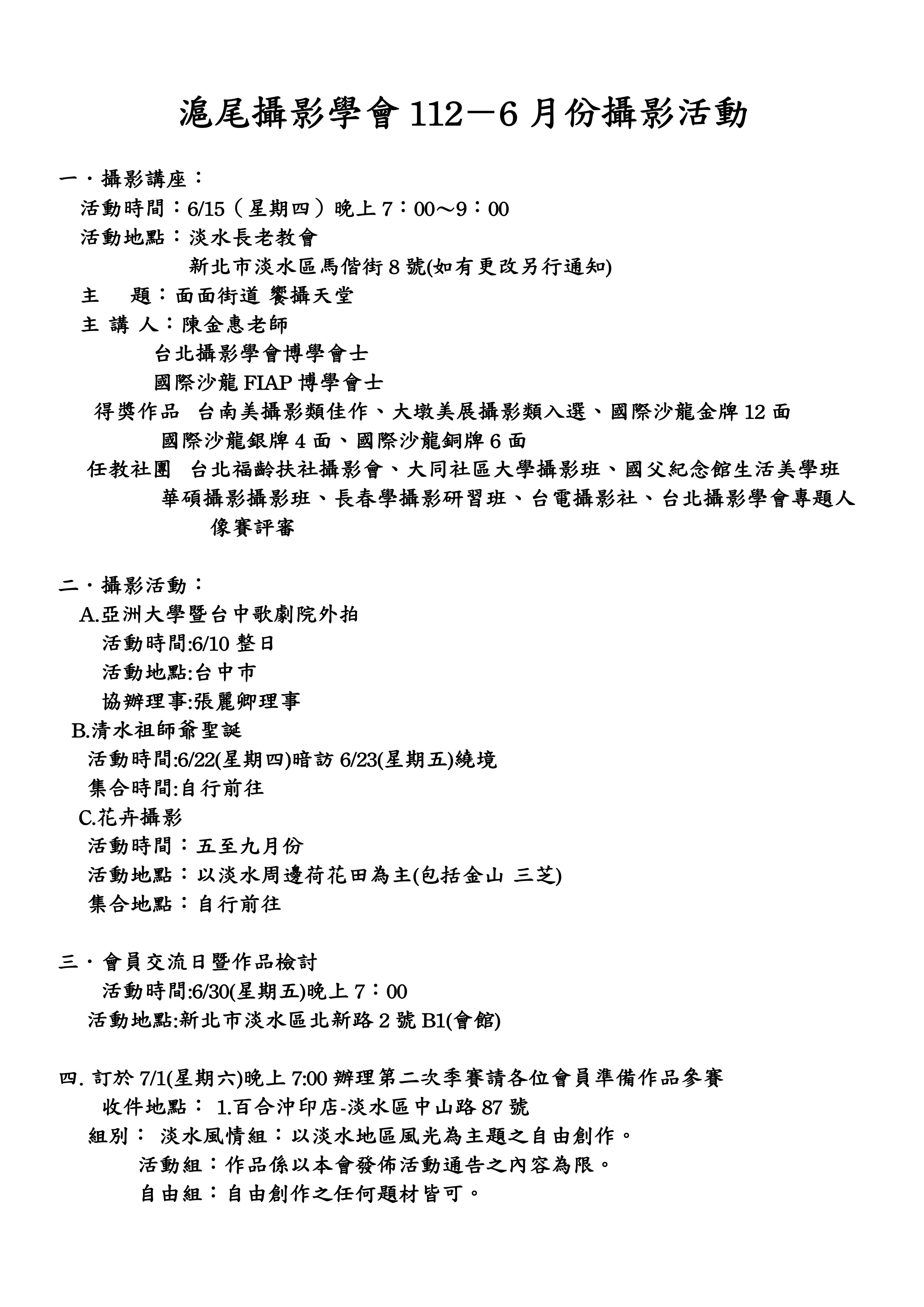 2023六月份活動通知