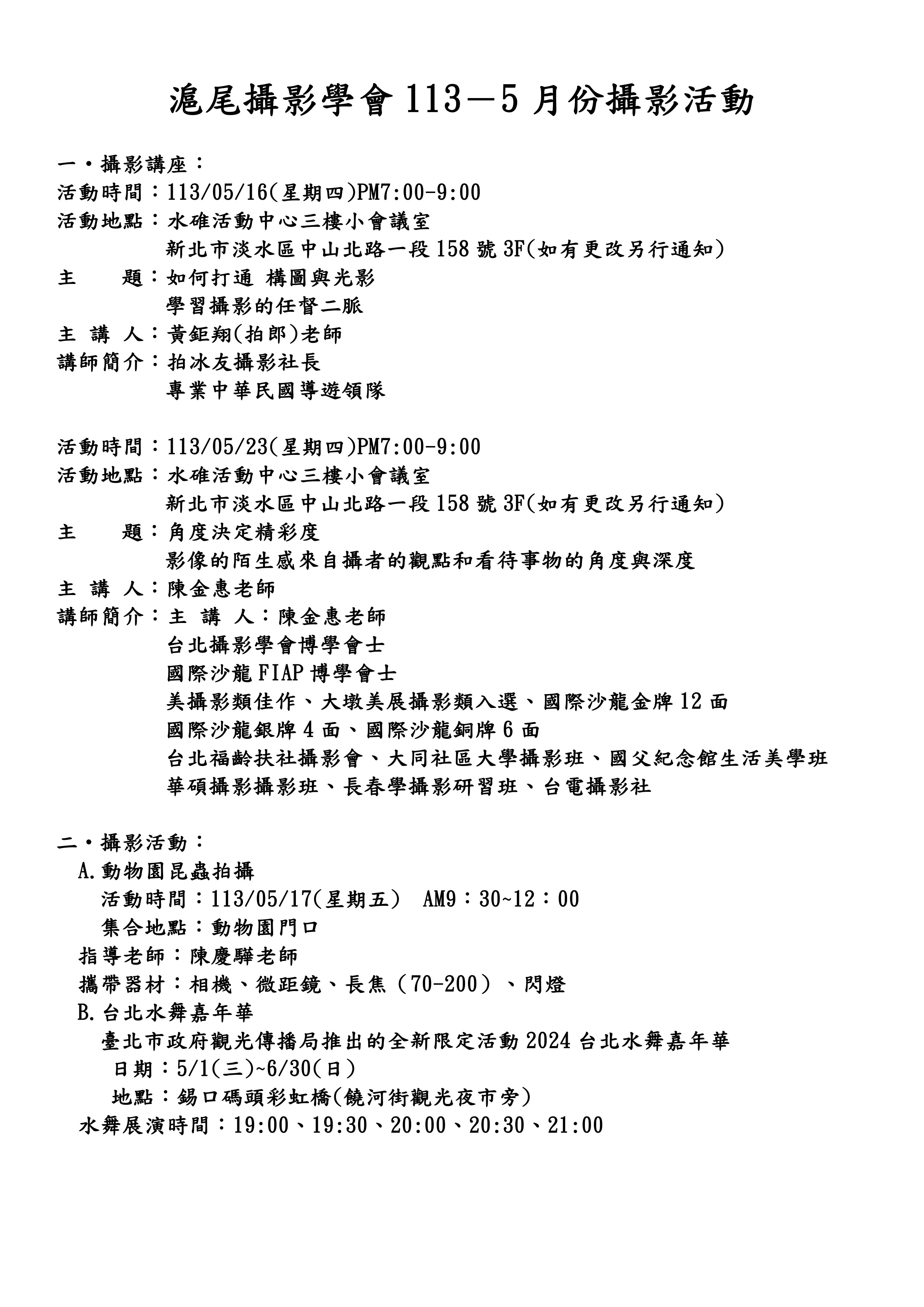 2024五月份活動通知